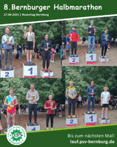 Mit neuem Teilnehmerrekord ging am 27.09.2025 der Bernburger Halbmarathon in die achte Runde. 491 Läuferinnen und Läufer begaben sich auf die 5, 12 und 21 Kilometer langen Strecken in und um Bernburg. Bei bestem Laufwetter kämpften sie um den Sieg auf den Strecken und sammelten gleichzeitig wichtige Punkte im Solvay-Cup. Alle Ergebnisse sind auf lauf.psv-bernburg.de/hm zu finden. Und auch der Termin für nächstes Jahr steht schon fest: Am 19.09.2026 geht es wieder los, jetzt schon vormerken! Ein Dank gilt ebenfalls allen Helferinnen und Helfern, den Beasts Cheerleader PSV Bernburg und der DLRG Bernburg-Saale e.V. für die tolle Unterstützung ...
