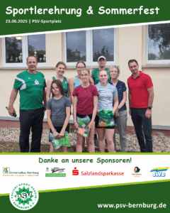 Ein letztes Mal vor den Sommerferien trafen sich die Sportlerinnen und Sportler aller Abteilungen auf dem PSV-Sportplatz zu einem gemeinsamen Sommerfest. Zuerst wurden die erfolgreichen Athleten der vergangenen Saison geehrt und durften sich über einen Vereinspullover freuen. Einen Dank gilt allen Sponsoren unseres Vereins, ohne die wir diese Erfolge nicht feiern könnten! Anschließend sollte auch der sportliche Teil nicht zu kurz kommen und ca. 45 Kinder legten das Kinder-Leichtathletik-Abzeichen und das Laufabzeichen ab. Danach ließen alle den Abend bei Essen und kühlen Getränken ausklingen. Jetzt verabschieden wir uns in die Sommerferien und wünschen allen gute Erholung ...