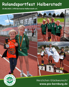 Am 23. August machte sich eine kleine Gruppe unserer Jüngsten auf den Weg nach Wolmirstedt, um dort am Rolandsportfest teilzunehmen. Und der Weg sollte belohnt werden… Elaina Ebeling konnte sich über 2 Silbermedaillen im Dreikampf (50m, Weitsprung, Ballwurf) und 400 m-Lauf der Altersklasse 6 freuen. Ihr gleich tat es Zoe Ochmann, welche in der Altersklasse 10 ebenfalls zweimal das Treppchen erklomm. Die Silbermedaillen ergänzte Emilia Ebeling mit einem tollen Lauf über 400 Meter der AK 9. Ebenfalls mit dabei waren Laura Böckel (W8) und Nele-Sophie Kirchhoff (W11), welche jeweils knapp am Podest im Mehrkampf vorbeischrammten, sich aber trotzdem über tolle ...