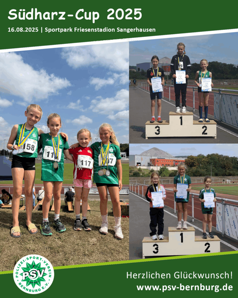 Am 16. August 2025 fand der erste Wettkampf nach den Ferien für unsere Jüngsten statt. In Sangerhausen zum Südharz-Cup konnten sie sich über eine großartige Ausbeute an Medaillen freuen.